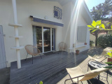 Située dans le Triangle d'Or, au calme, proche de la Plage et du Port, sur terrain agréable boisé et clôturé, cette maison comprend: séjour, cuisine équipée, 1 chambre avec 2 lits en 90cm, 2 chambres avec chacune avec 1 lit en 140, salle d'eau, WC, cellier avec douche. Animaux acceptés. Ses équipements: Lave-vaisselle, lave-linge, télévision, mobilier de jardin, barbecue. Location du samedi au samedi.