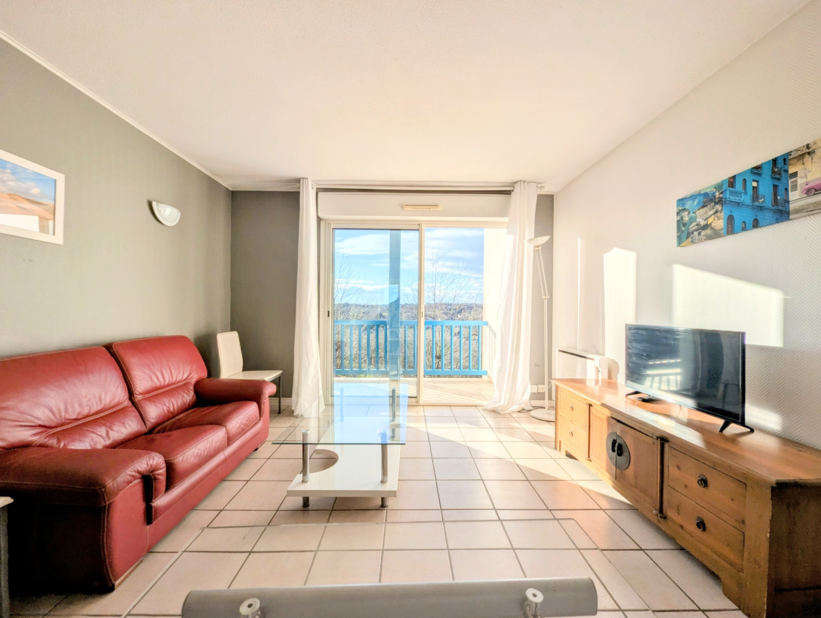 Situé aux portes de Bayonne, sur la commune de Bassussarry et à seulement 10 minutes des plages de Biarritz, venez découvrir cet appartement de plus de 48m² avec vue sur le golf de Makila. Au dernier étage de la résidence avec ascenseur, il se compose d'une alcôve,avec placard de rangement, pouvant accueillir deux lits superposés ou bien servir de bureau, un cellier, une salle de bain avec fenêtre, un wc et une chambre avec placard de rangement et un accès à la terrasse. Grâce à son exposition Ouest, vous pourrez profiter d'une pièce de vie lumineuse avec sa cuisine ouverte de plus de 21m² donnant accès à une grande terrasse de près de 10m² avec vue sur le golf. La résidence bénéficie d'une piscine extérieure et de deux parkings privés libres de stationnement.